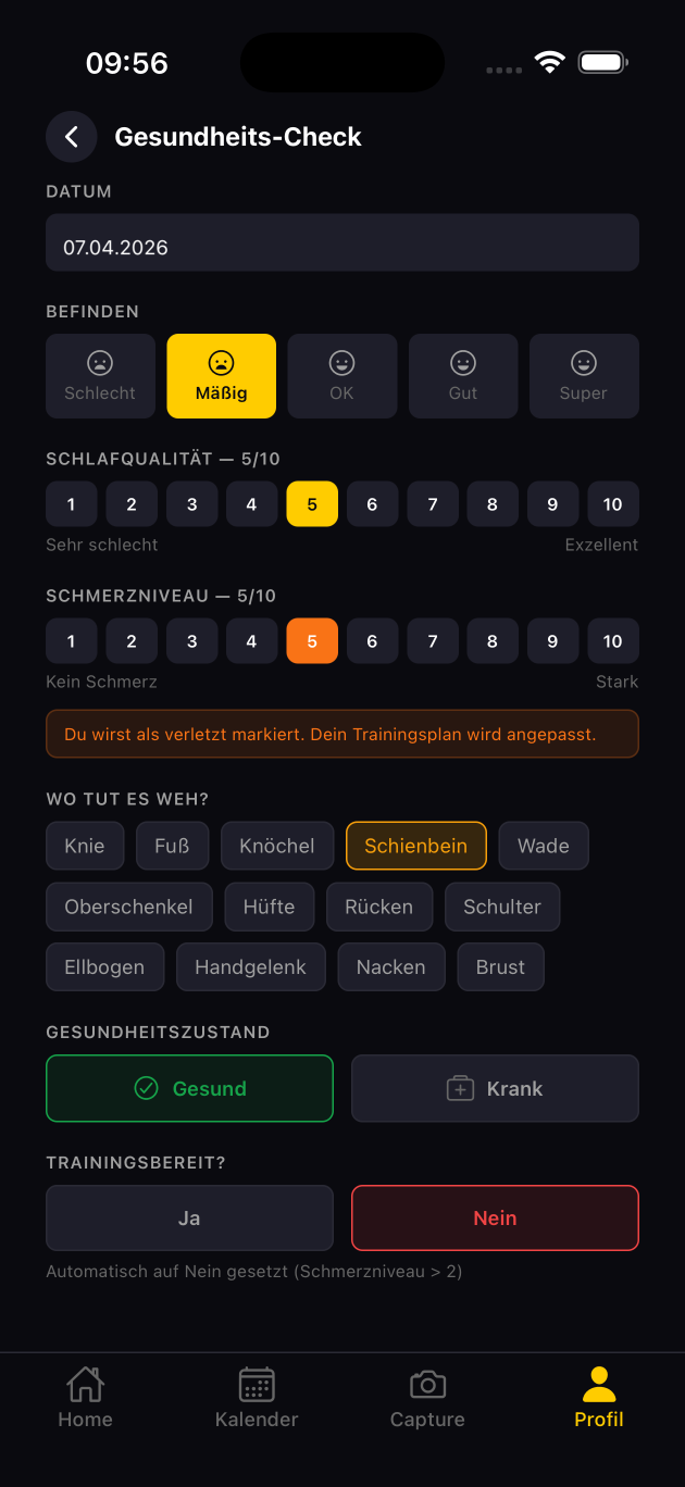 Feedback und Anpassung: Reagiert die App auf dein Training? Passt sich der Plan an, wenn du eine schlechte Woche hattest oder krank warst?