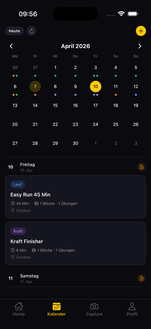 Stärken: Die Laufpläne sind hervorragend – klar strukturiert, mit sinnvoller Progression und exakter Pace-Vorgabe für jede Einheit. Die Apple Watch- und Garmin-Integration funktioniert nahtlos und zeigt dir live deine Zielpace an. Kraft- und Mobility-Sessions sind optional hinzubuchbar und passen sich an dein Equipment an. Das Support-Team antwortet schnell und persönlich. Für Athleten, deren größter Hebel das Laufen ist (und das betrifft die meisten), ist Runna eine sehr starke Wahl.